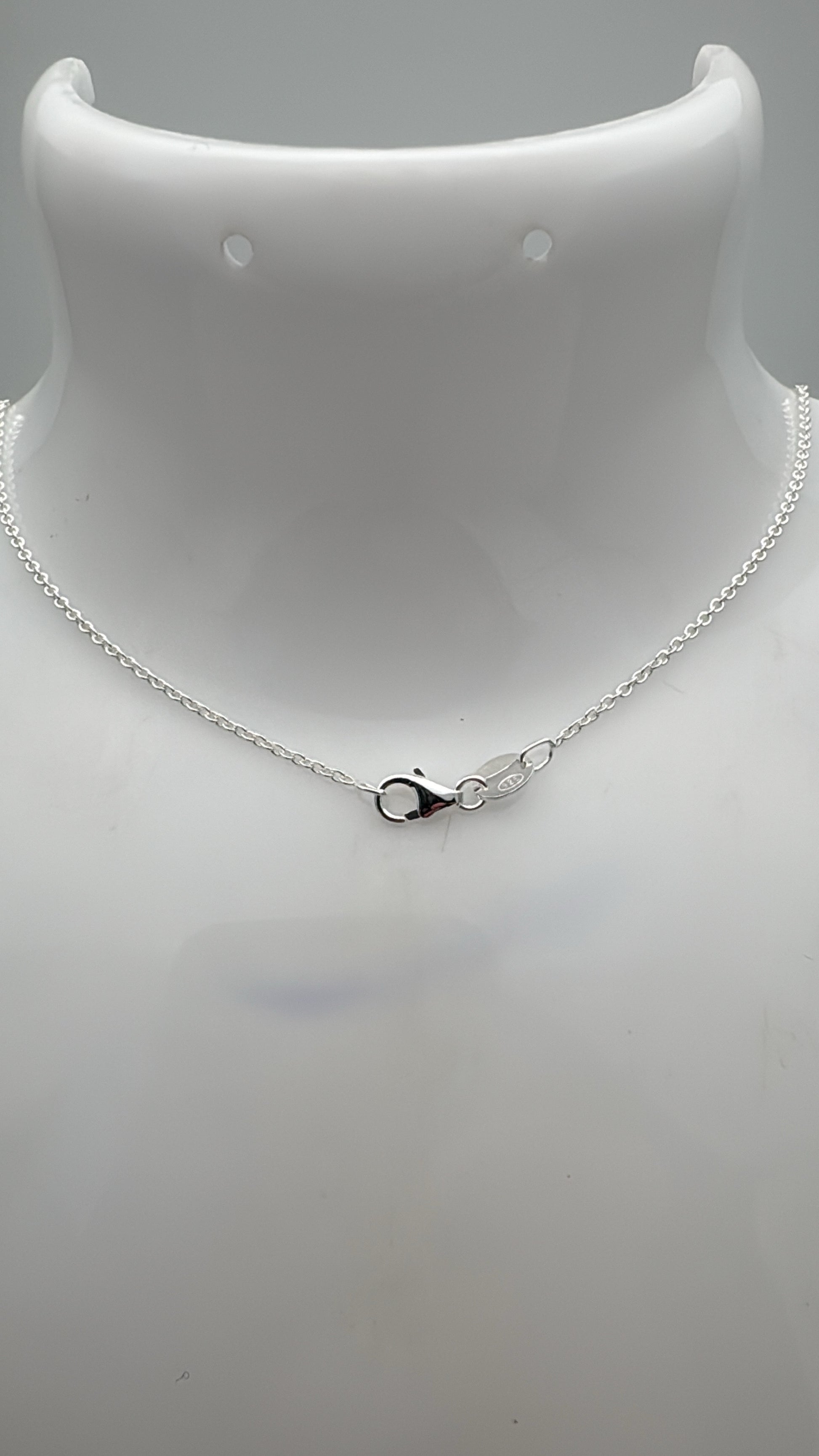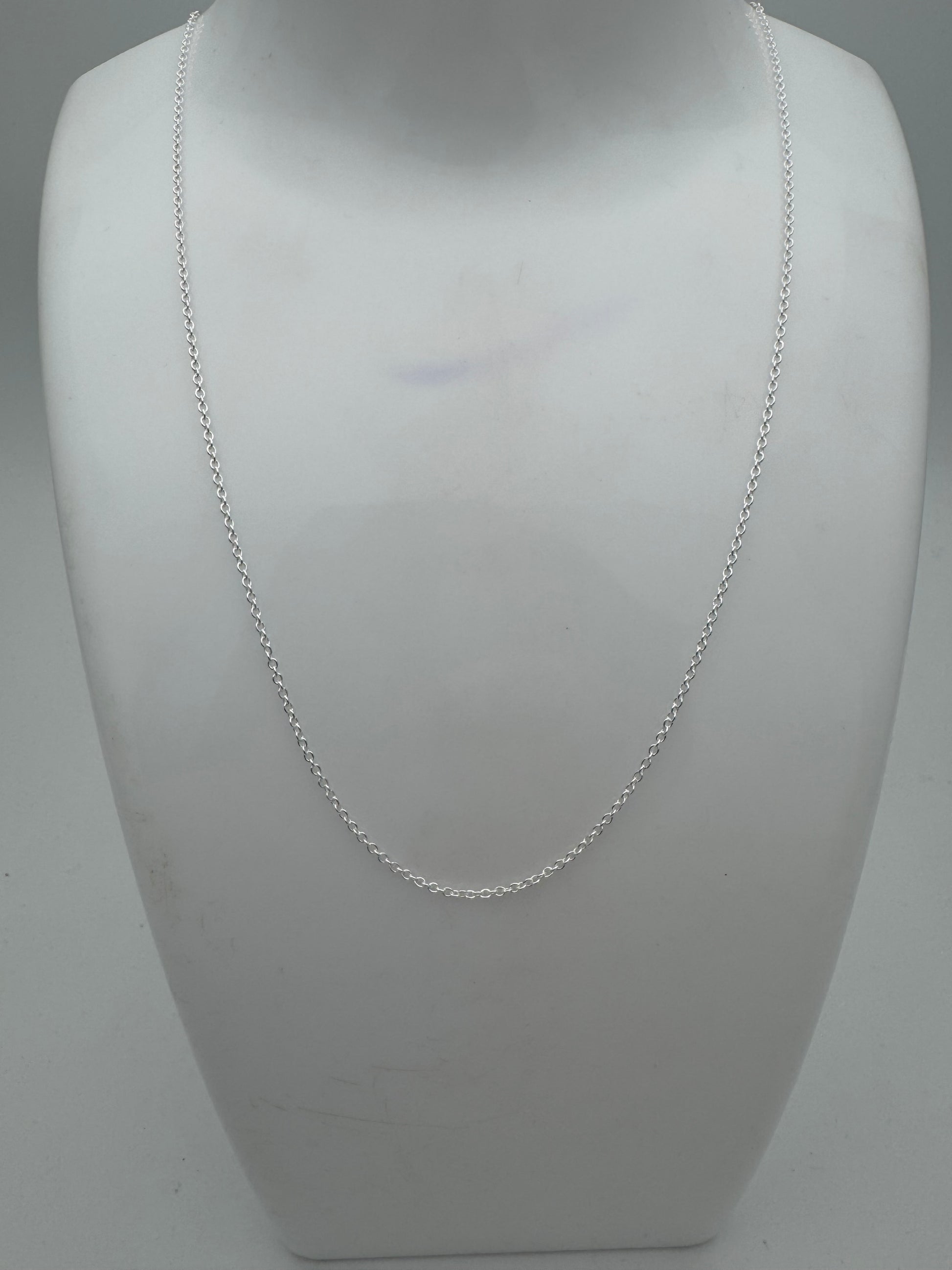 This beautiful 1.2mm sterling silver cable chain has an anti tarnish finish. The chain is suitable for most of our small to medium sized pendants and also looks great on its own.