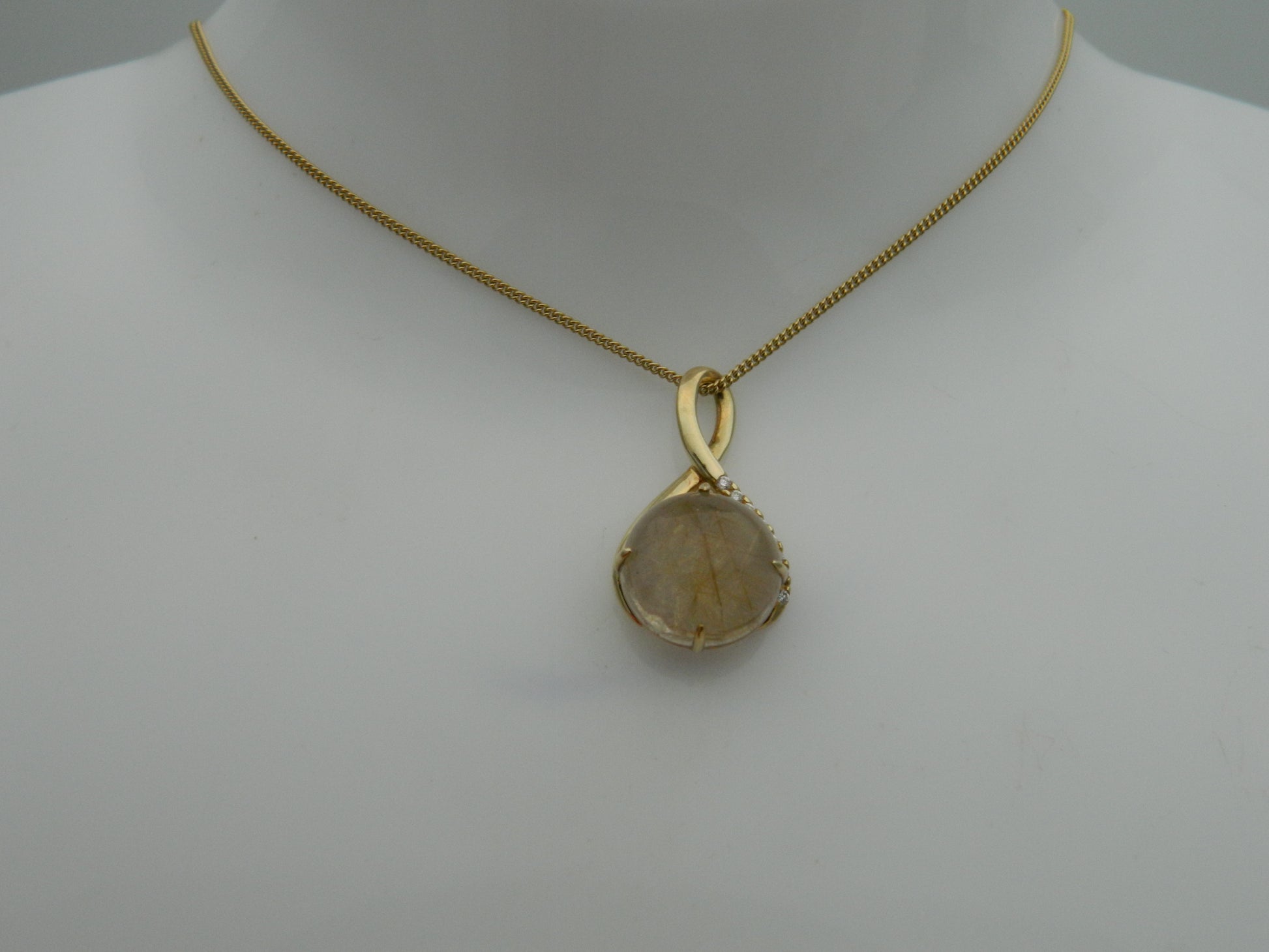 Clogau 9ct Yellow Gold Venus Rutilated Quartz & Diamond Pendant Total weight: 5.1g approx. Pendant length/width: 25mm/14mm approx. Chain length: 46cm.