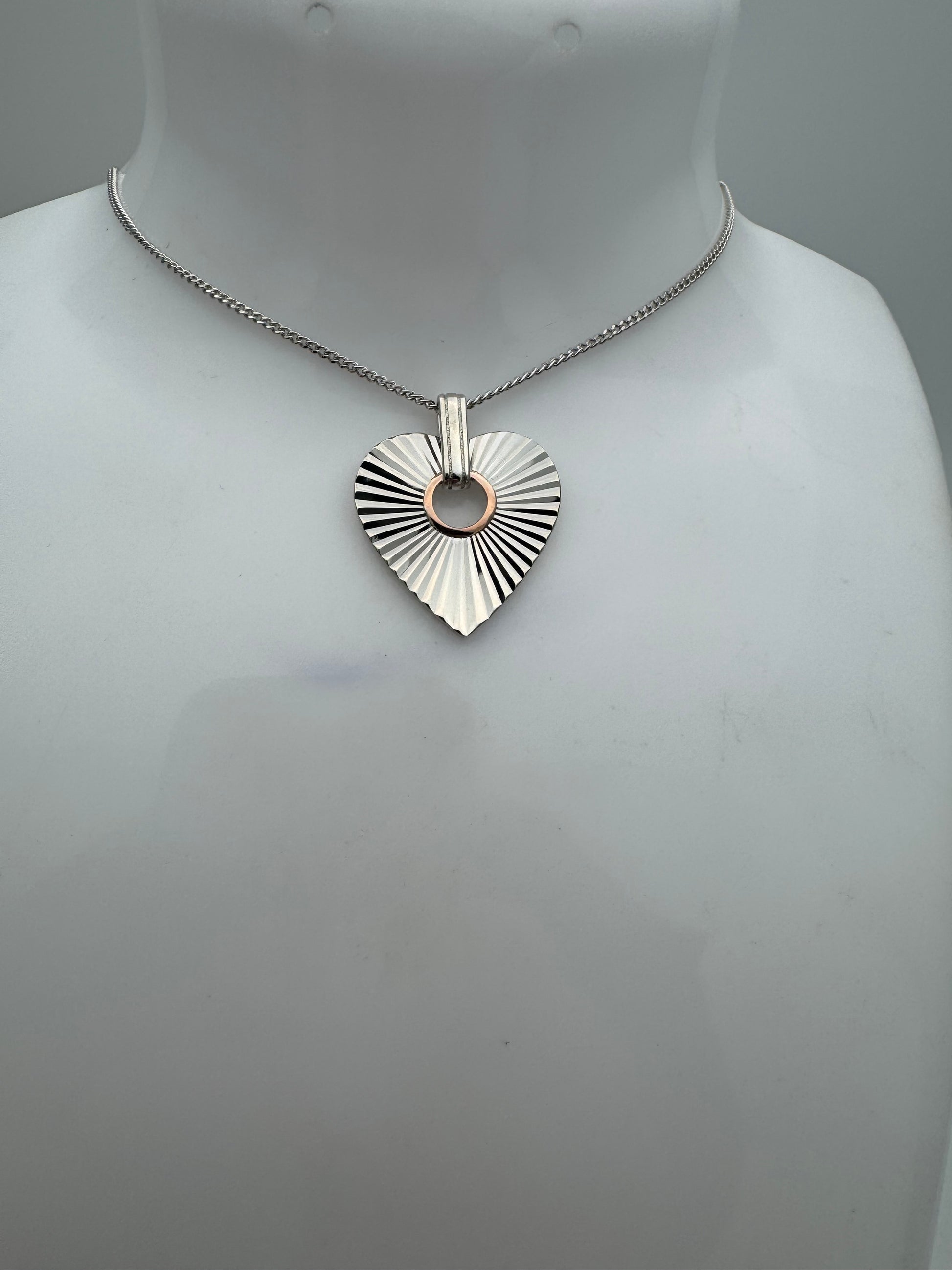 Clogau Sterling Silver & 9ct Rose Gold Cariad Horizon Heart Pendant RRP £179.00