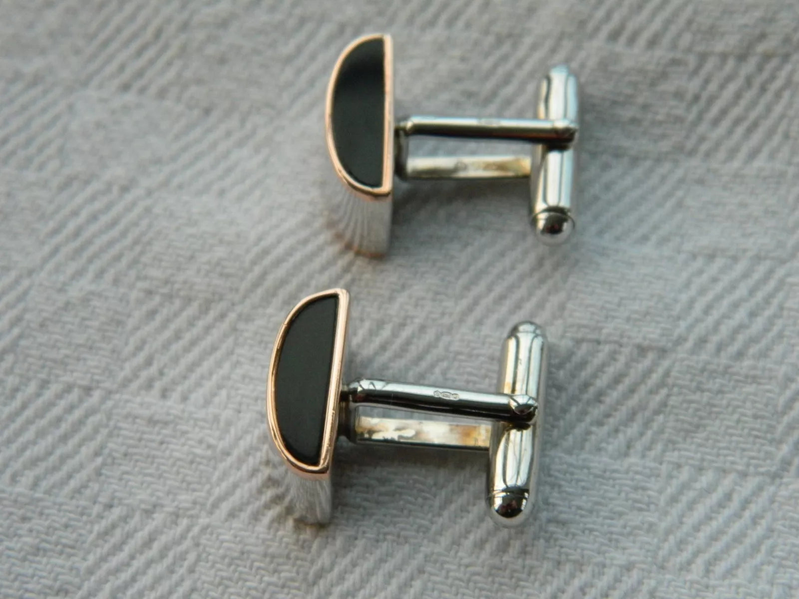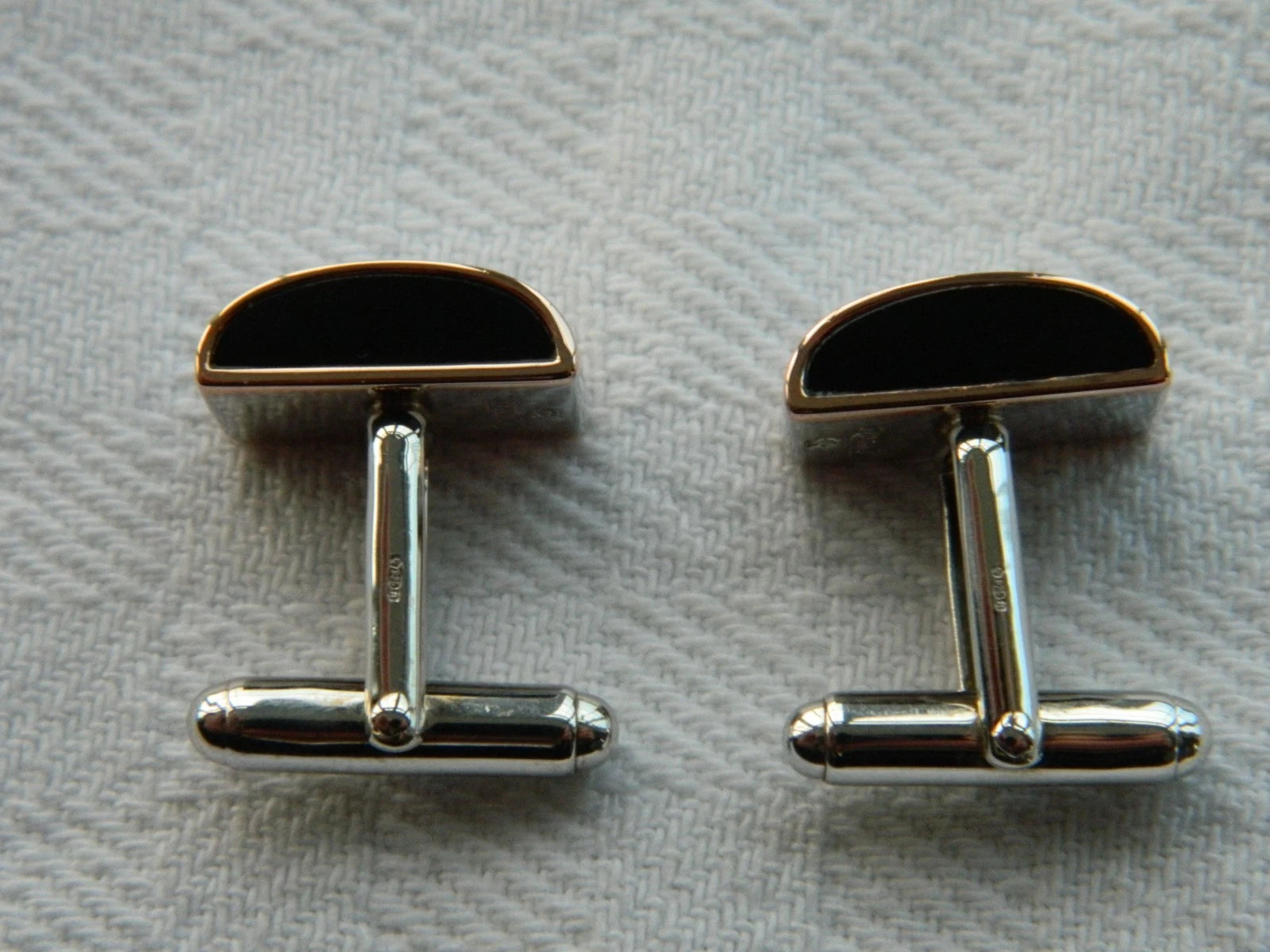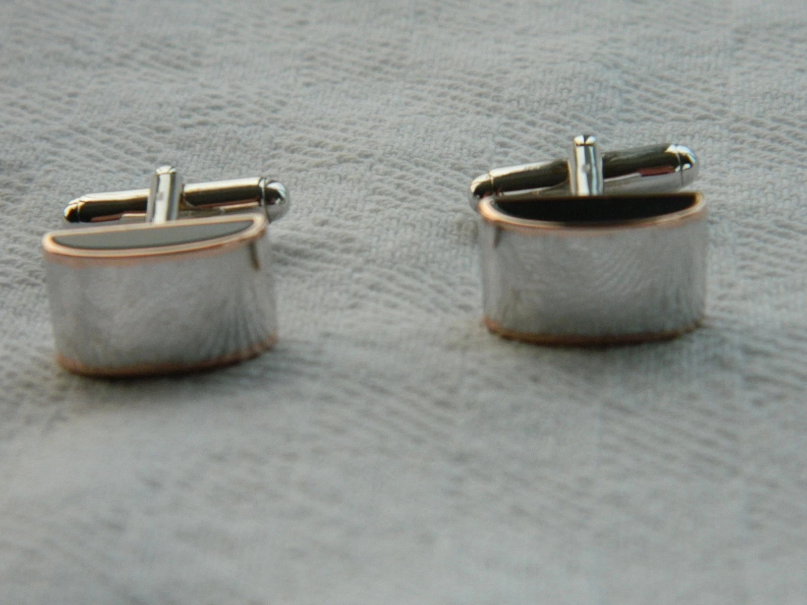 The cuff links are 'seconds'. Some light scuffs and marks visible upon close inspection.