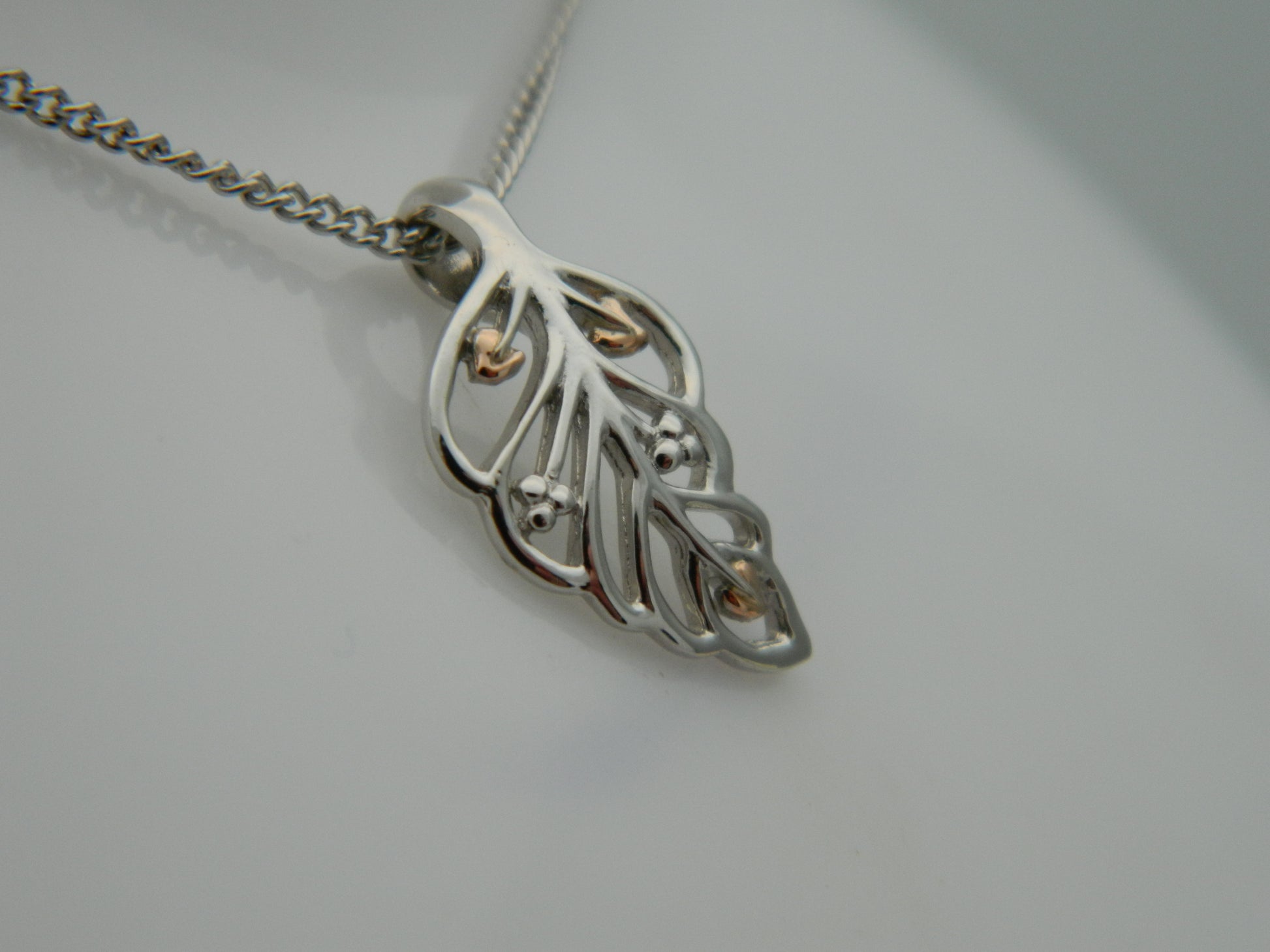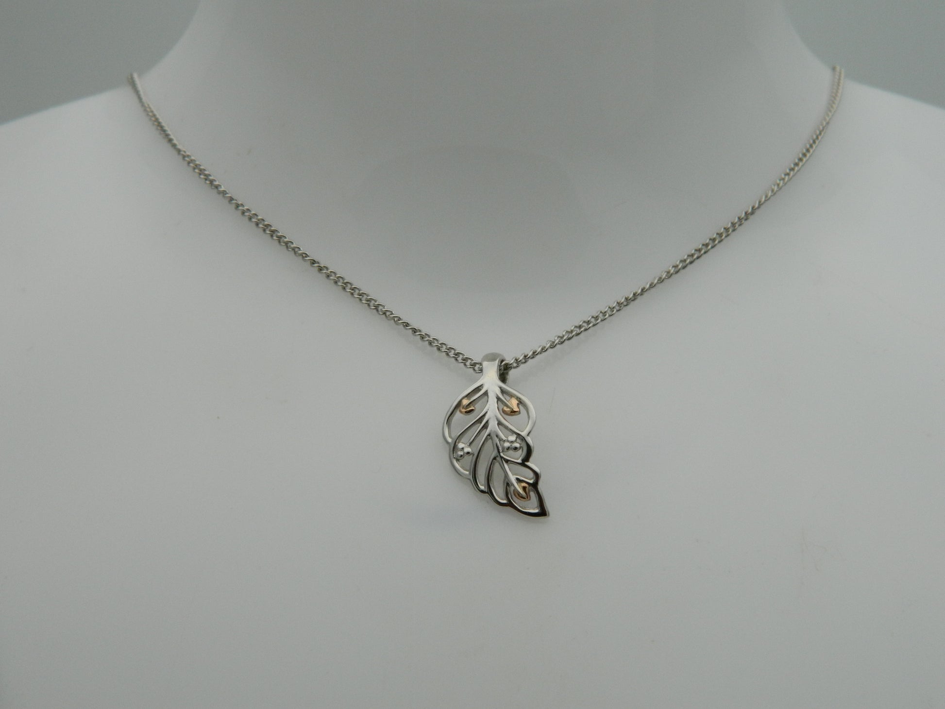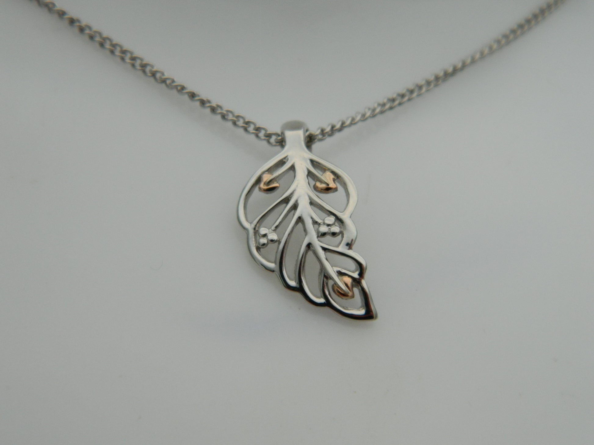 Sterling Sterling Silver & 9ct Rose Gold Debutante Feather Pendant.