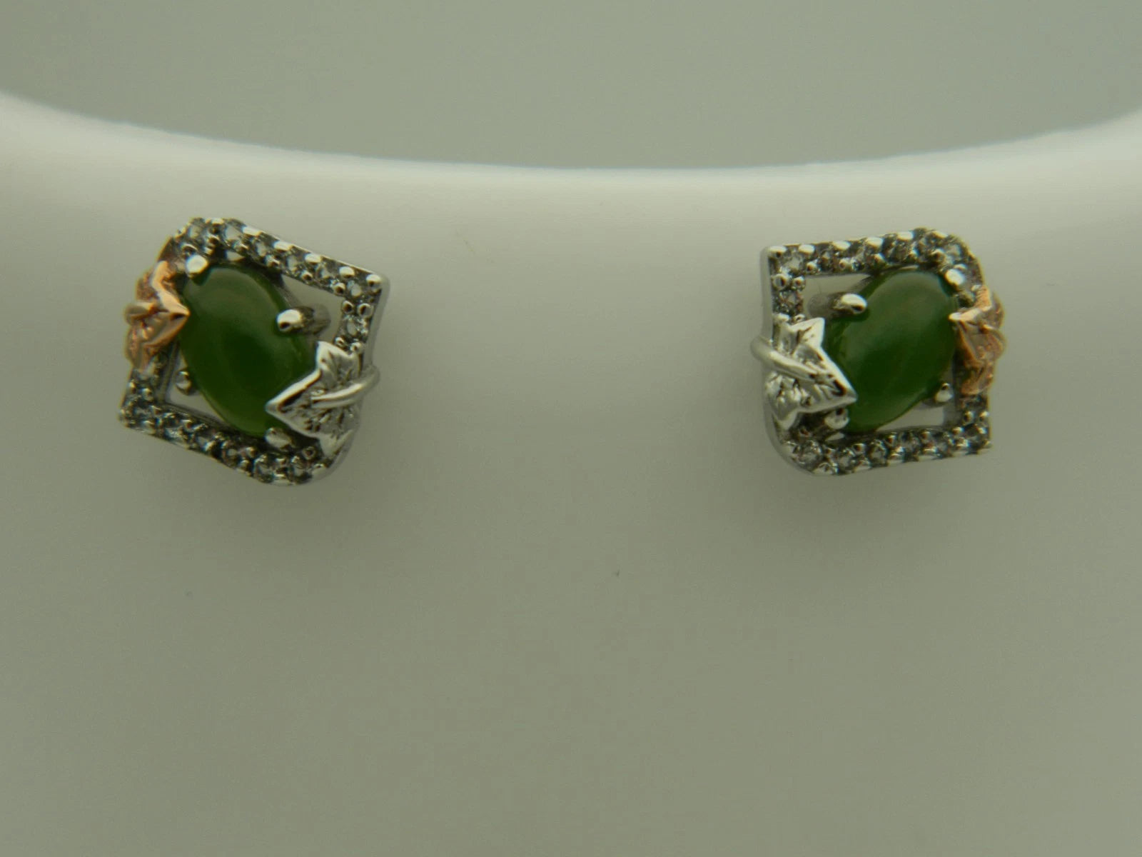 Clogau Sterling Silver & 9ct Rose Gold Ivy Leaf Green Jasper Stud Earrings RRP £179.00