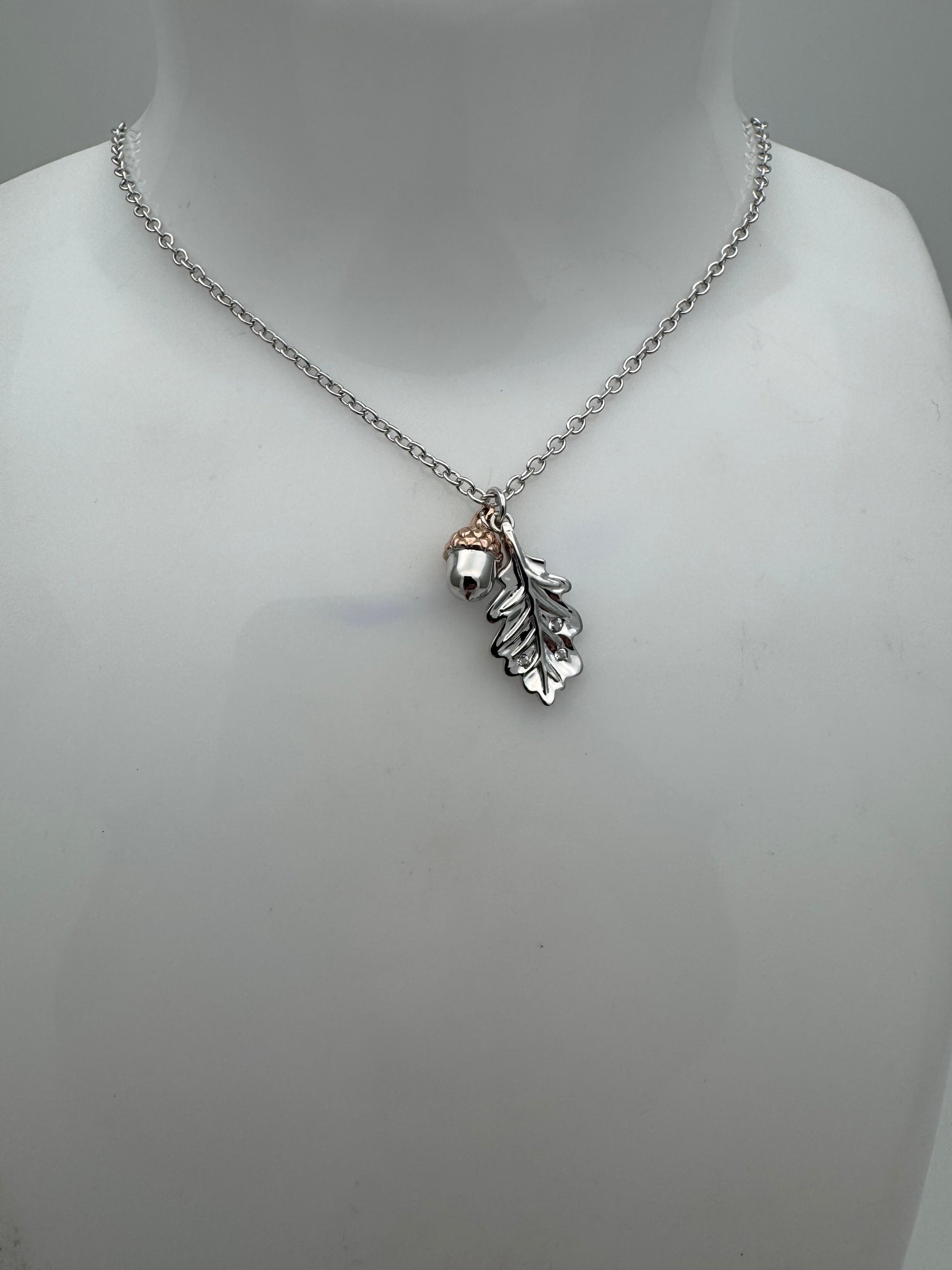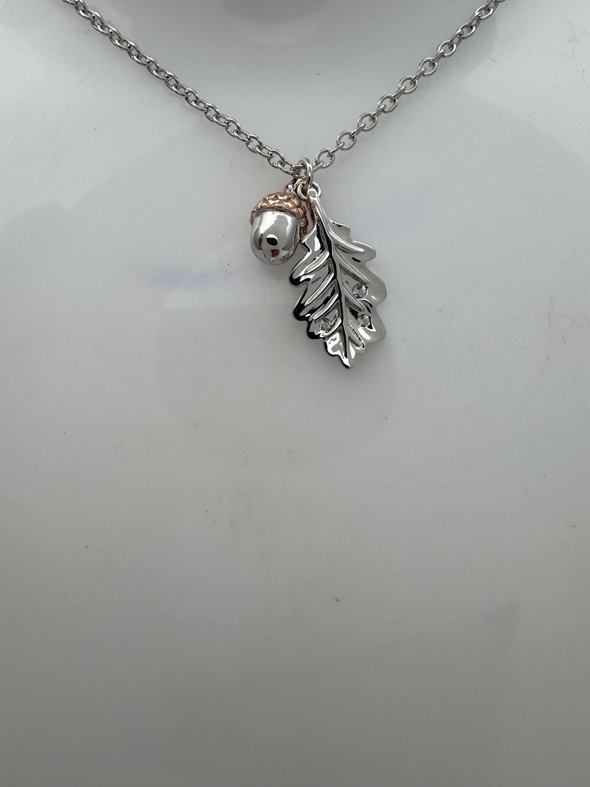 Clogau Sterling Sterling Silver & 9ct Rose Gold Oak Leaf White Topaz Pendant.