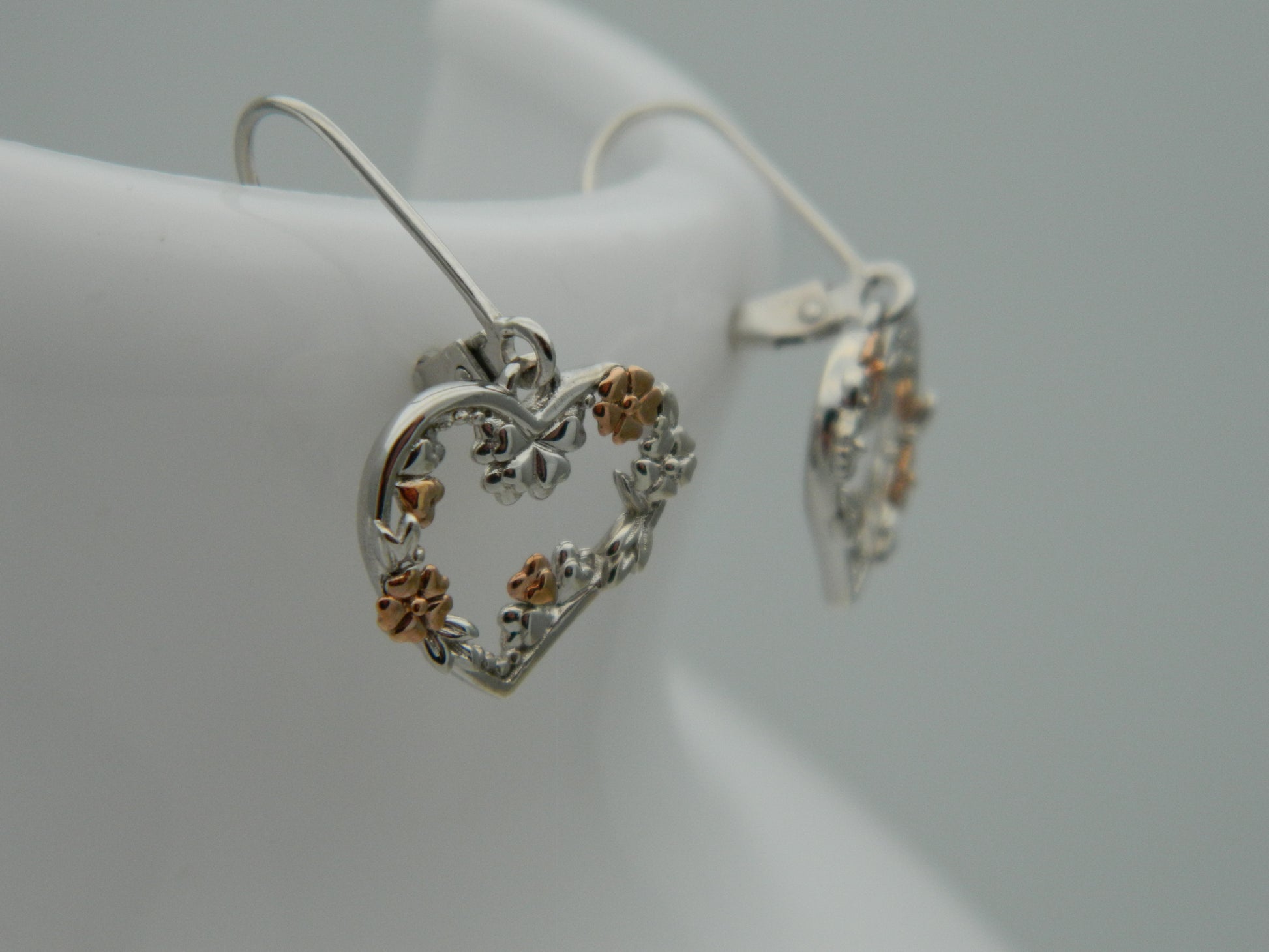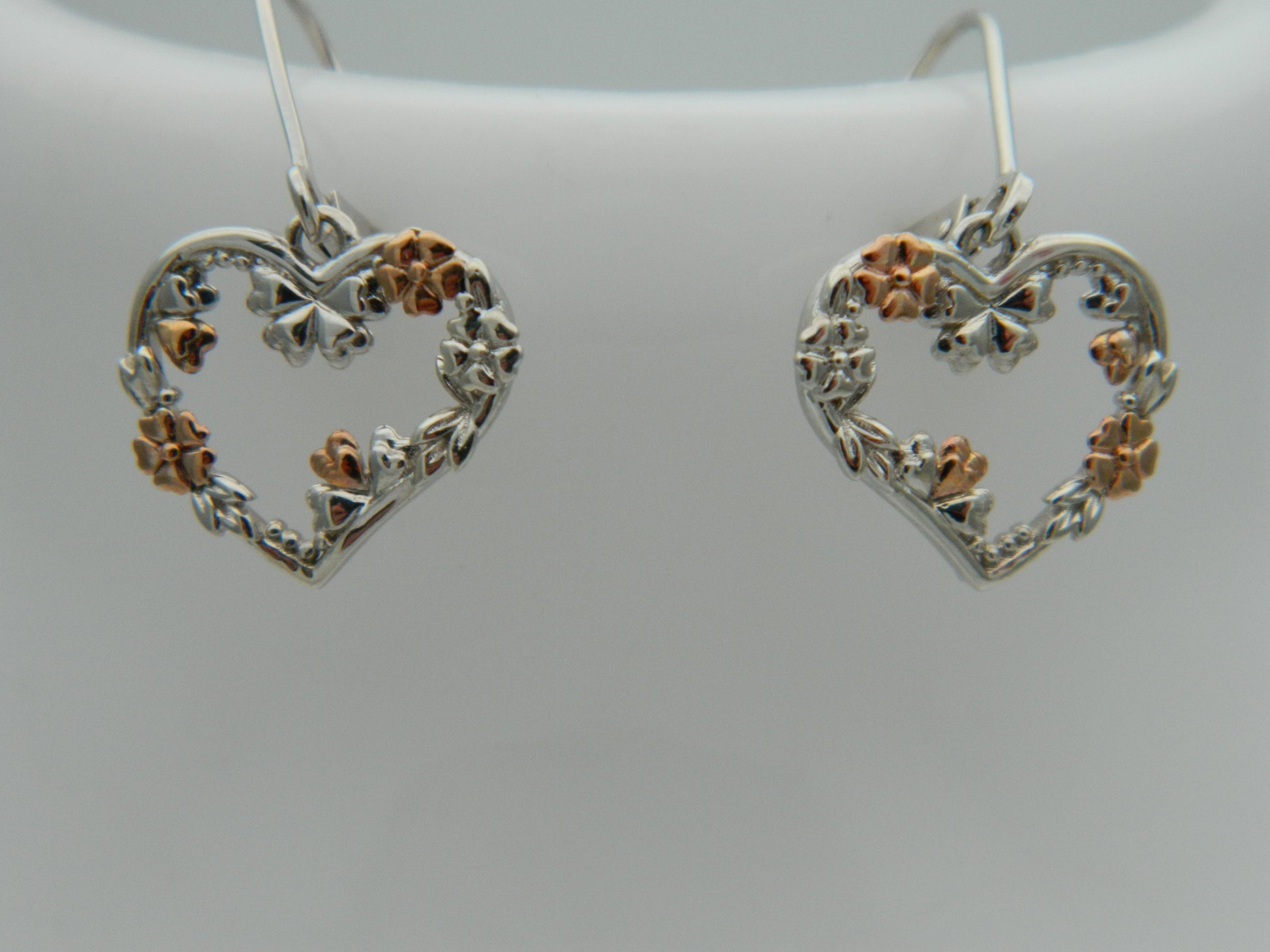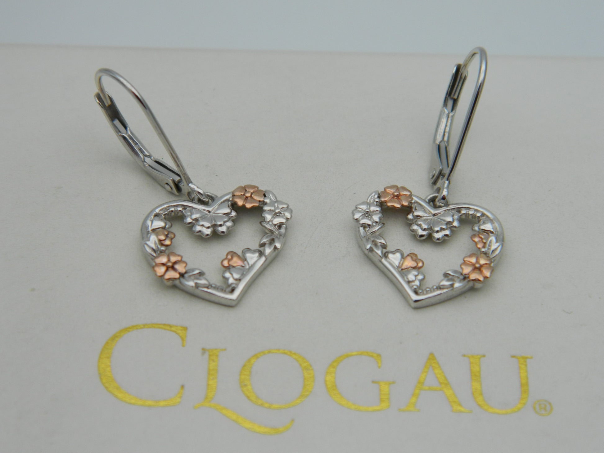 Clogau Sterling Silver & 9ct Rose Gold Primrose Heart Drop Earrings.
