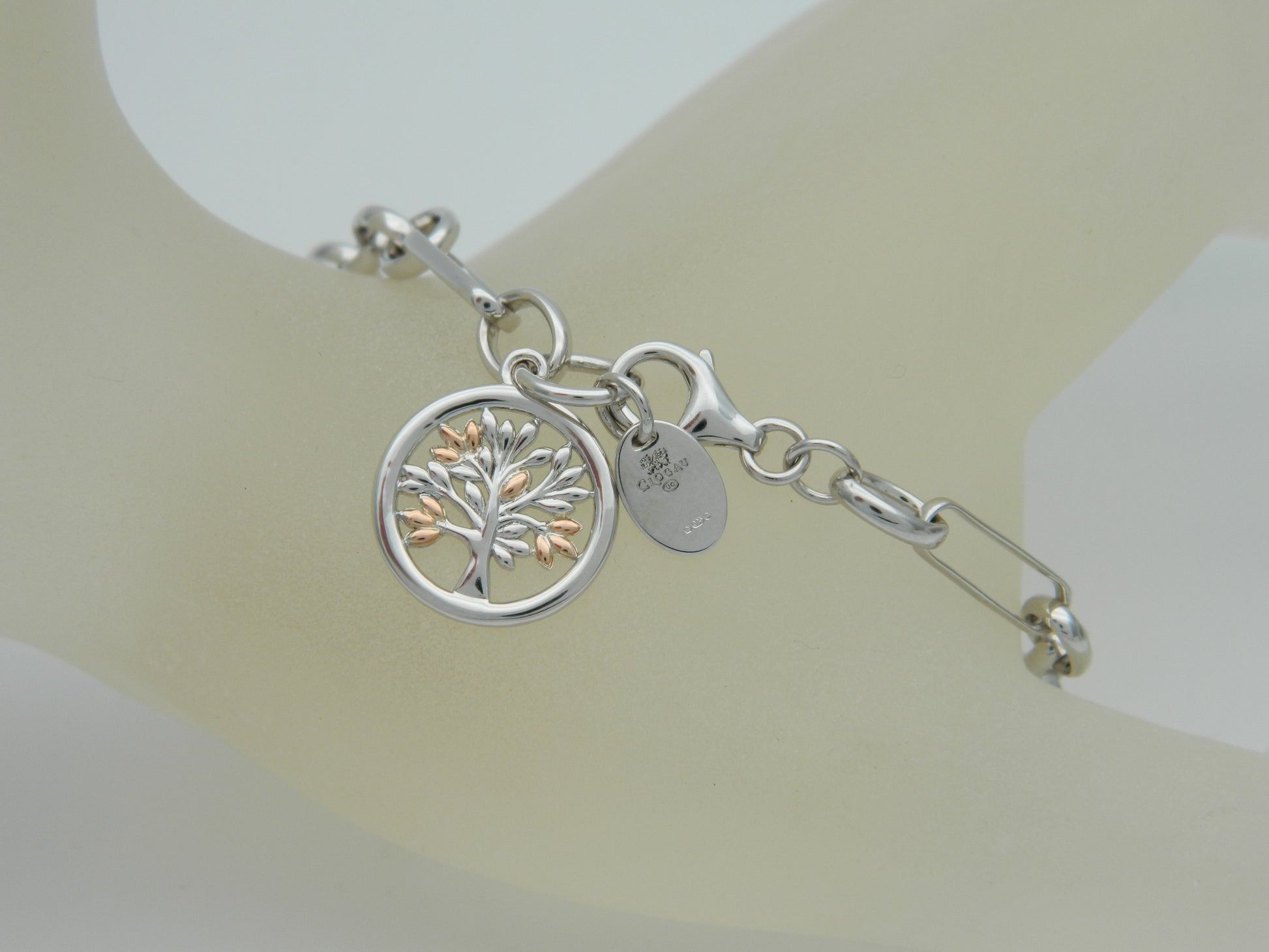 Clogau Sterling Silver & 9ct Rose Gold Tree of Life Figaro Bracelet.