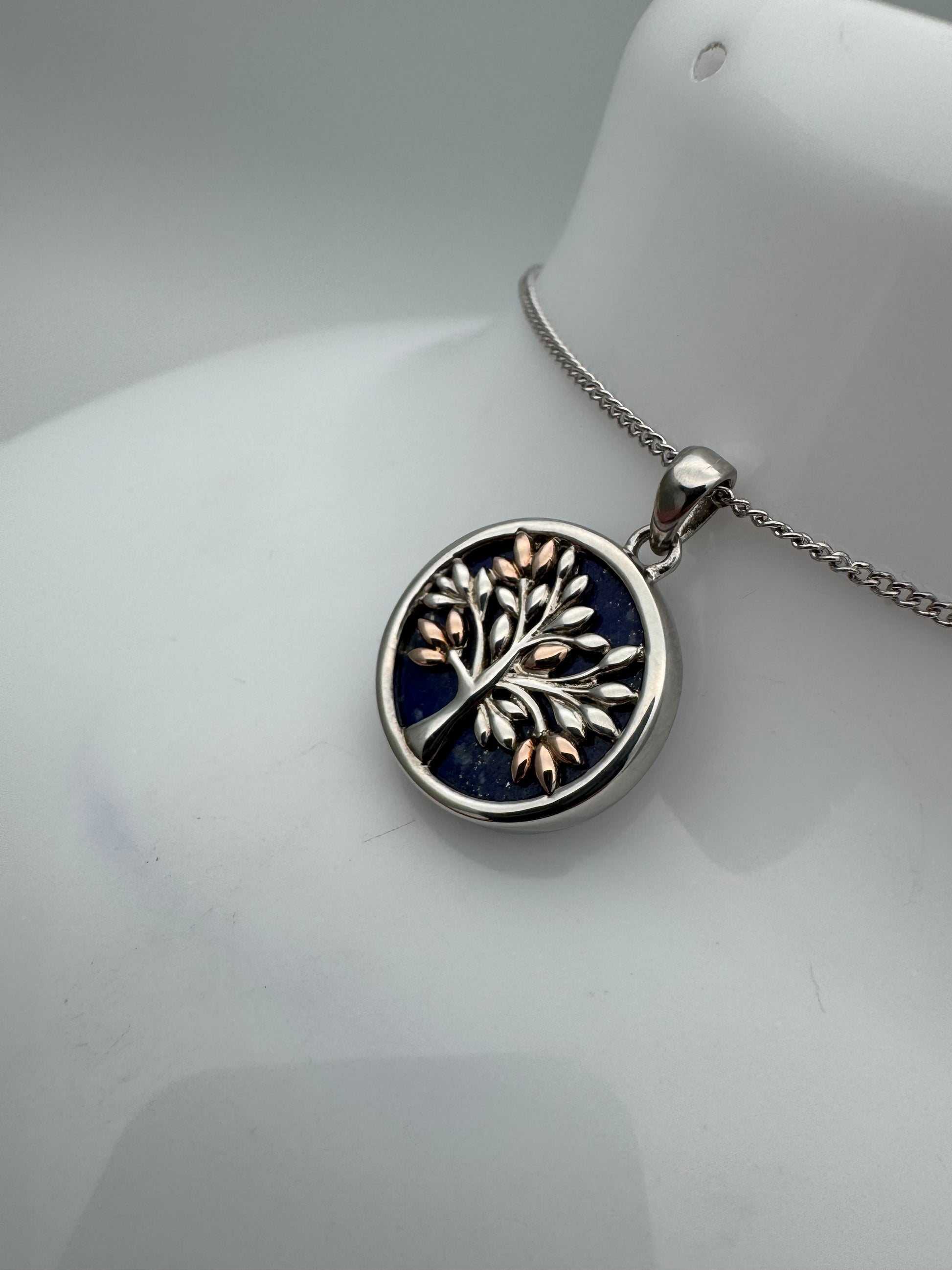 Clogau Sterling Sterling Silver & 9ct Rose Gold Tree of Life Lapis Lazuli Pendant.