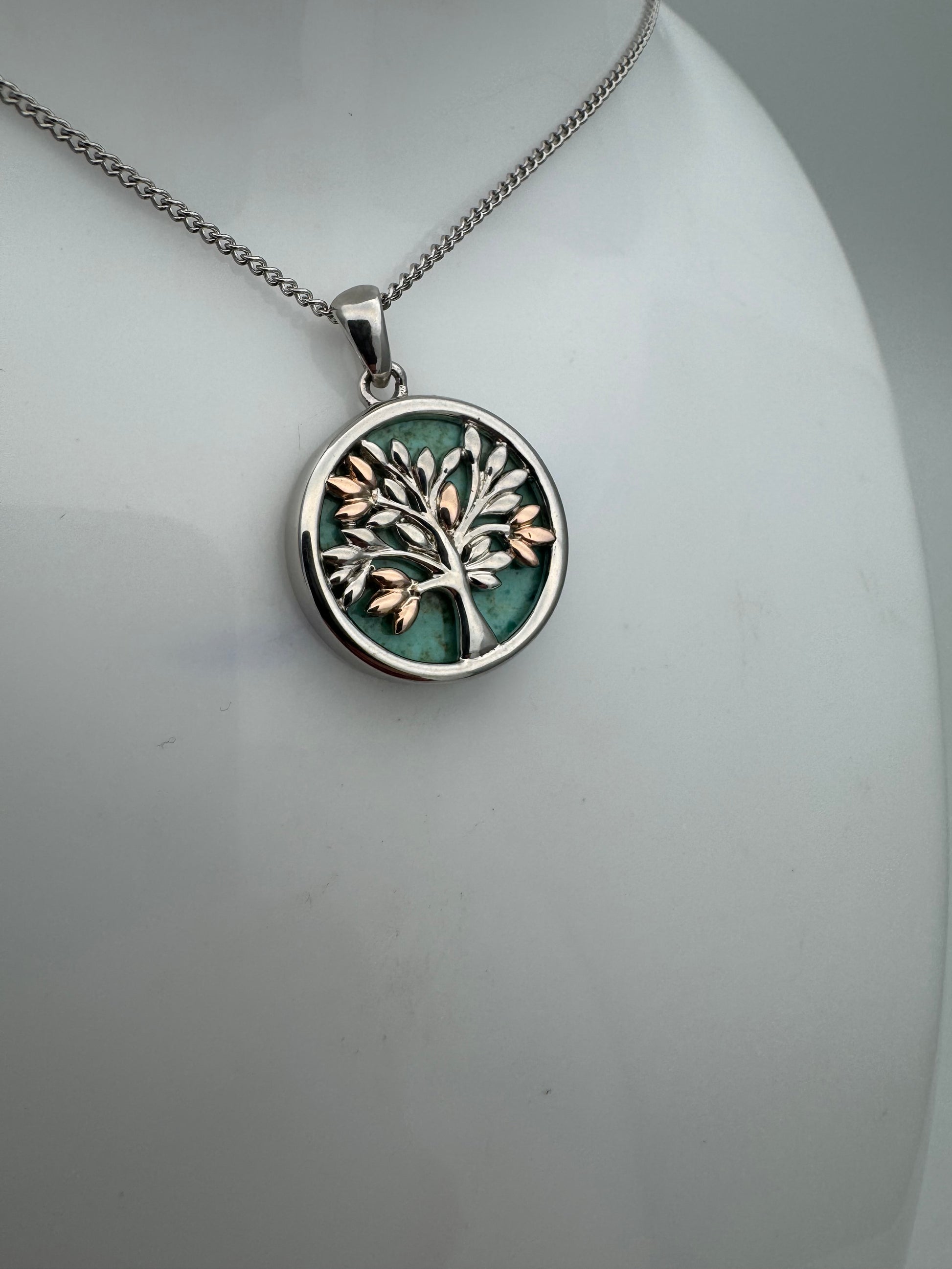 Clogau Sterling Sterling Silver & 9ct Rose Gold Tree of Life Turquoise Pendant.