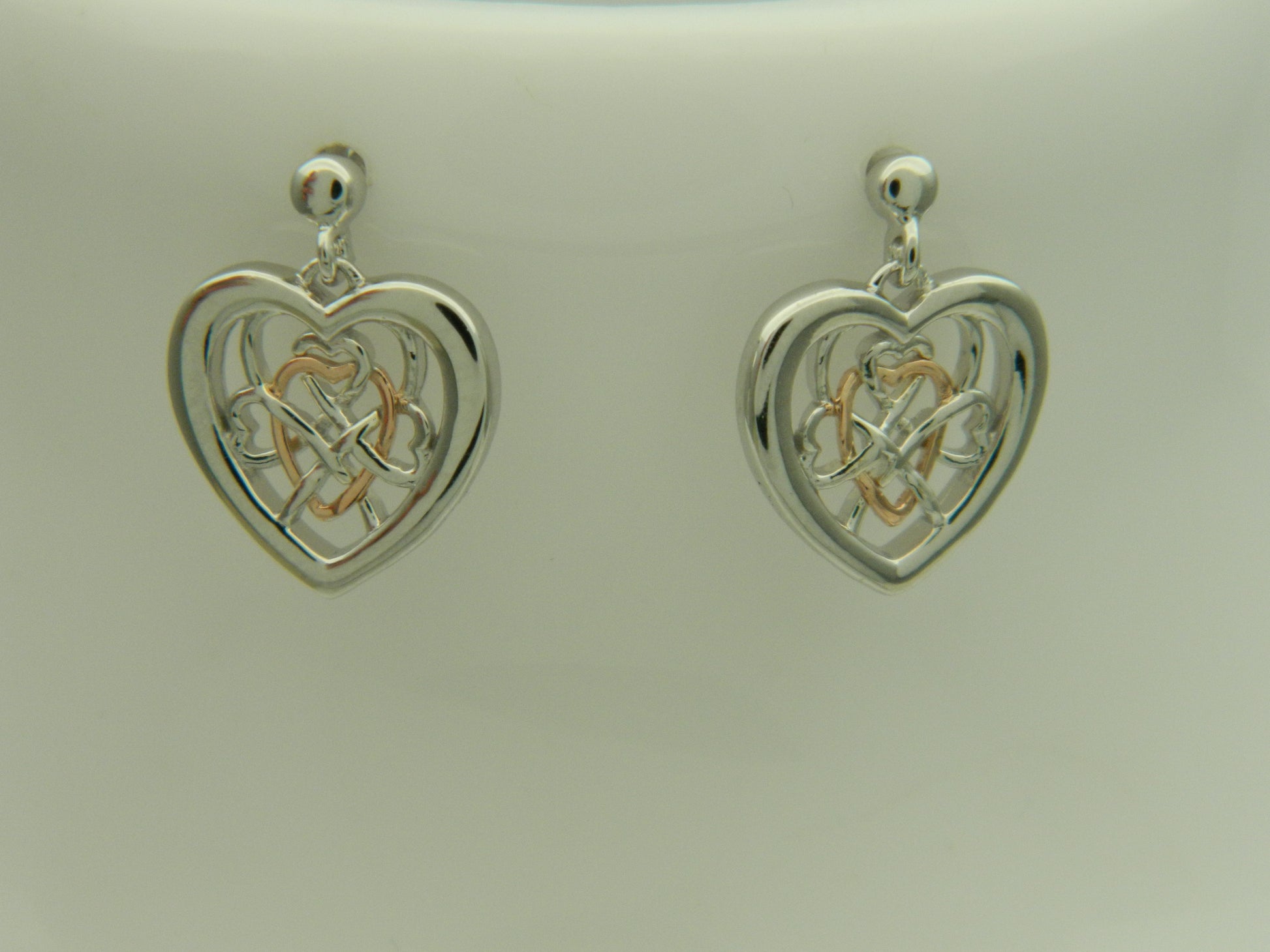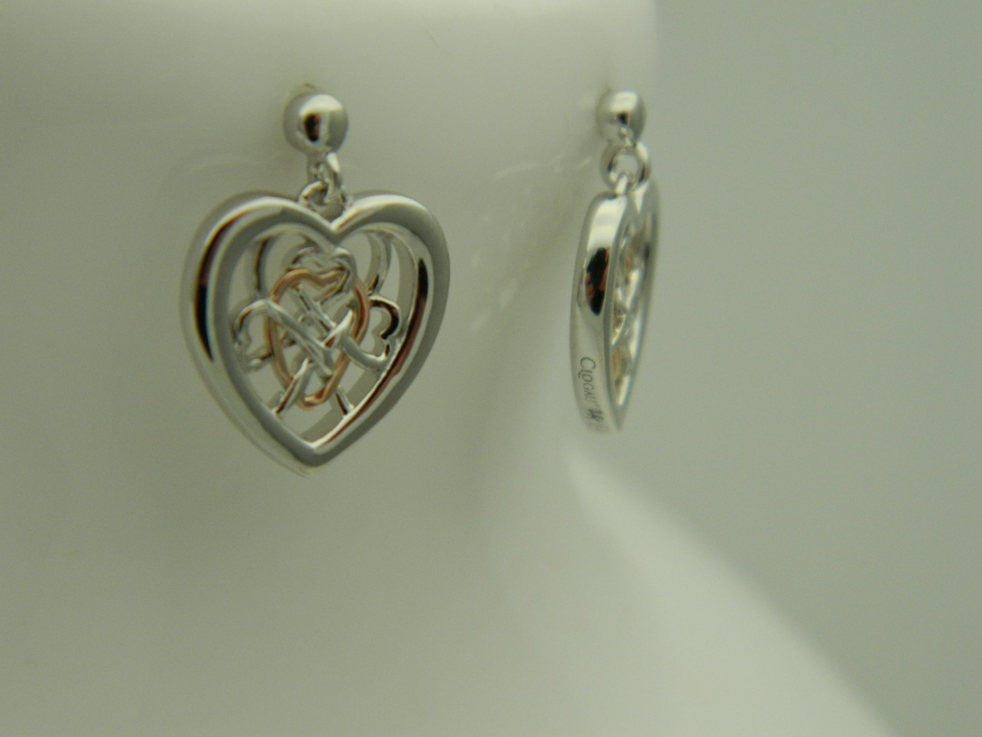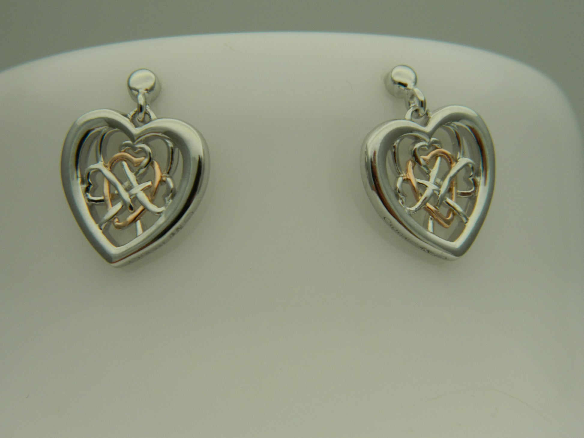Clogau Sterling Silver & 9ct Rose Gold Welsh Royalty Heart Stud Drop Earrings