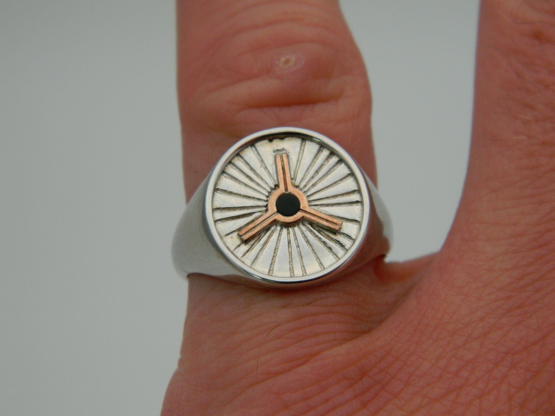Clogau Sterling Silver & 9ct Rose Gold Yr Wyddfa Summit Black Onyx Signet Ring.