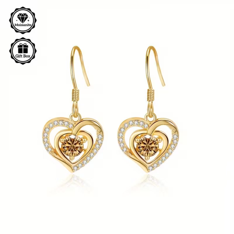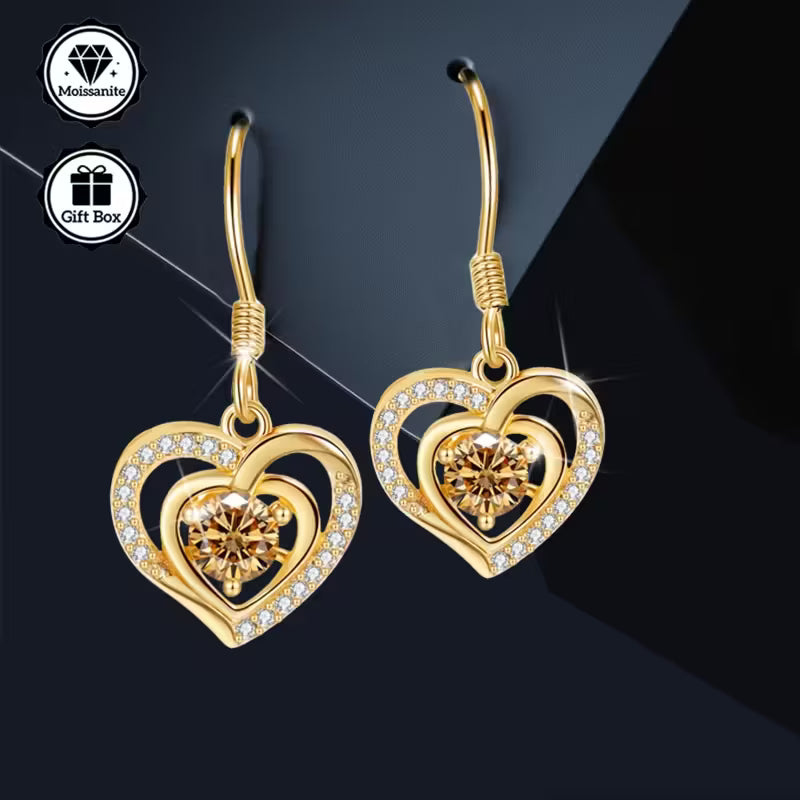 Gold Plated Sterling Silver 0.5ct Citrine Moissanite Heart Drop Earrings