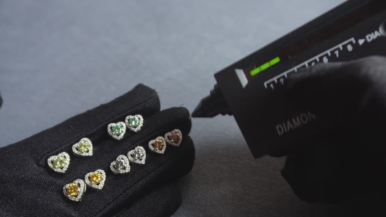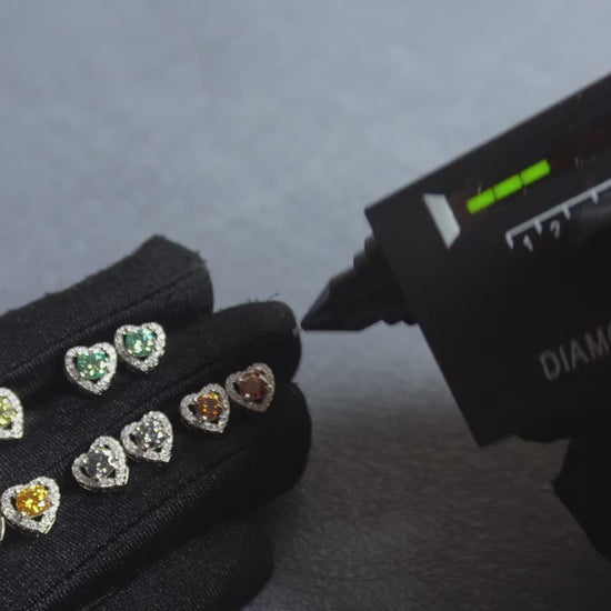 925 Sterling Silver 1ct (0.5ct each) Olive Green Moissanite Heart Stud Earrings.