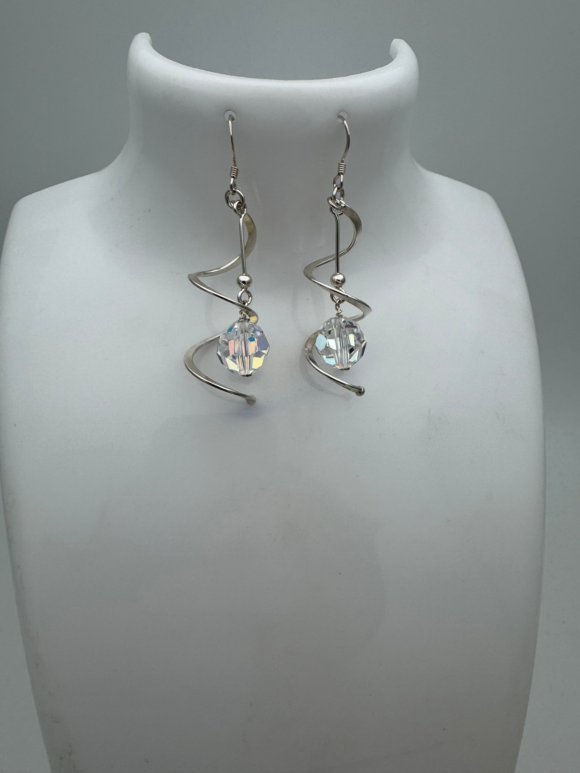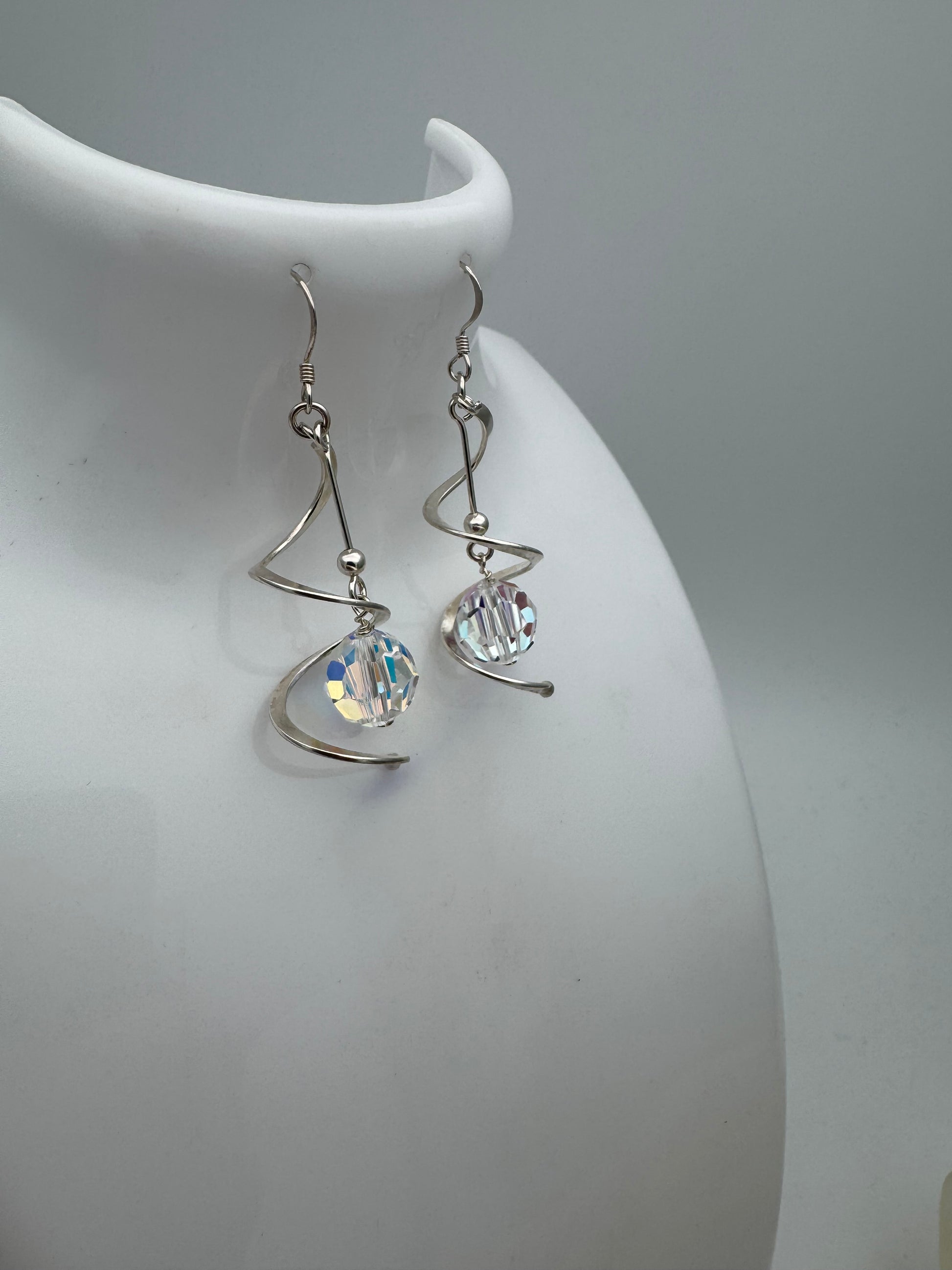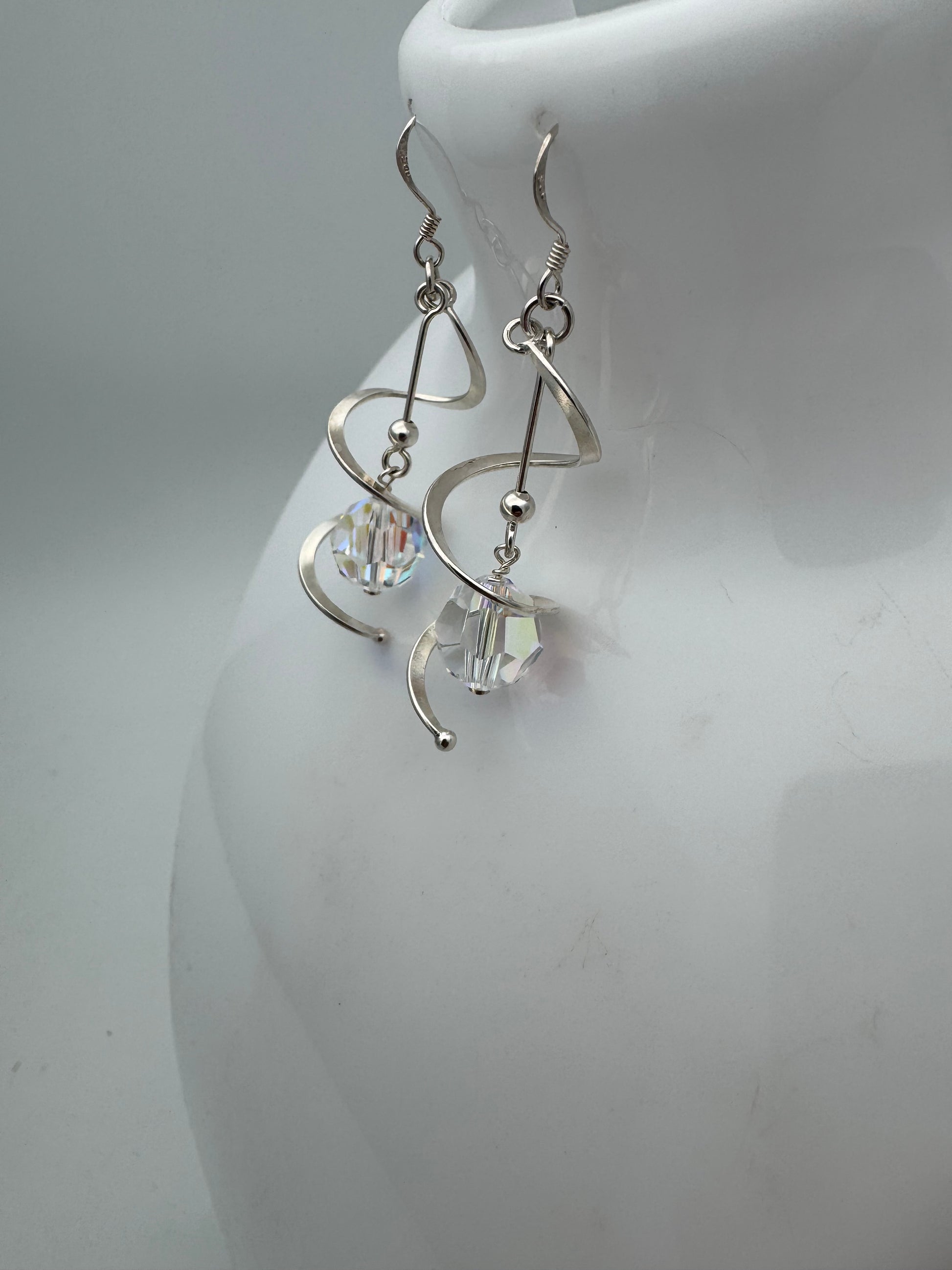 Sterling Silver Aurora Borealis Crystal Swirl Drop Earrings