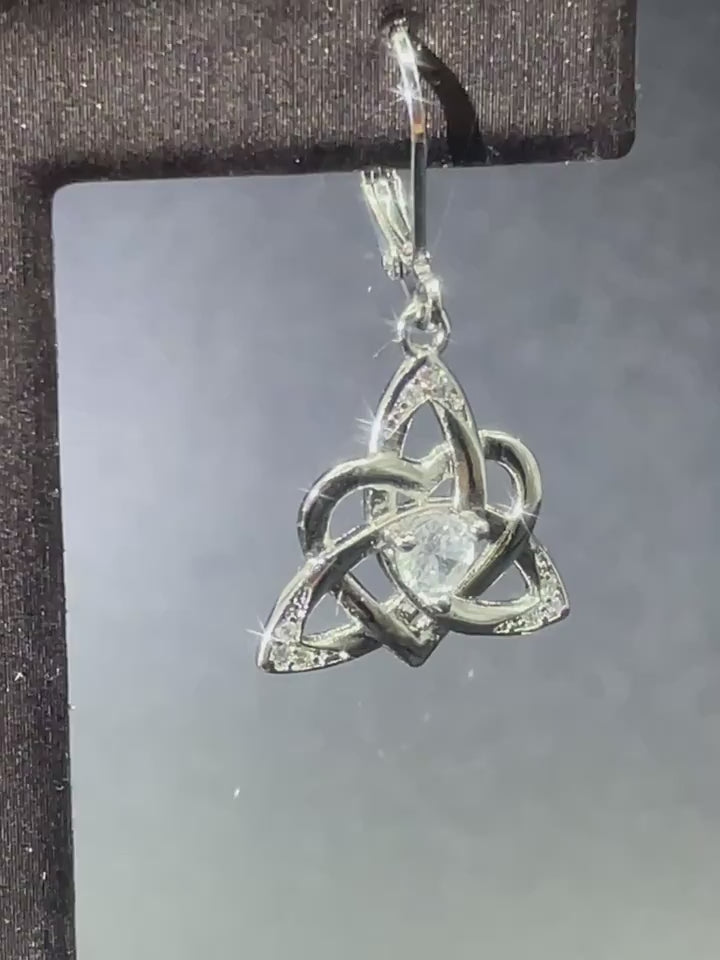 Sterling Silver Celtic Knot Cubic Zirconia Drop Earrings