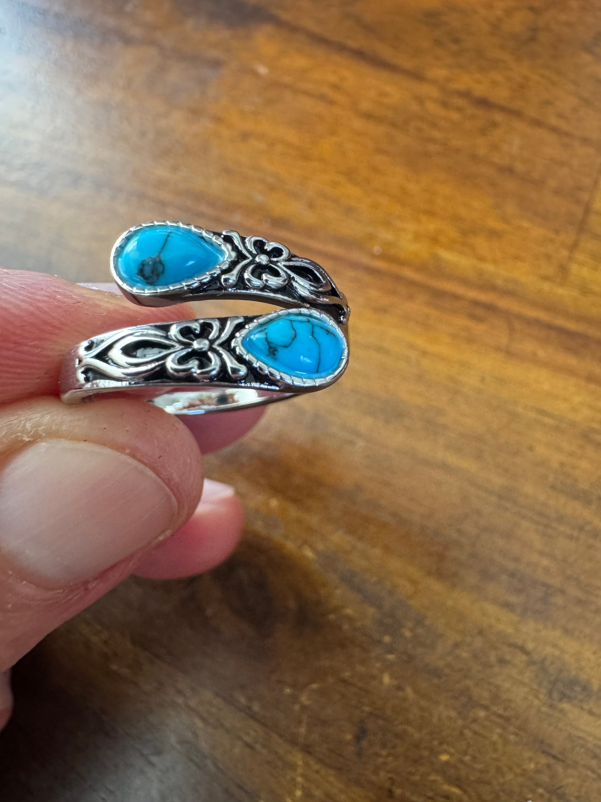 Sterling Silver Teardrop Turquoise Patterned Ring Adjustable P-T