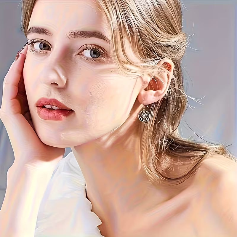 925 Sterling Silver Witches Knot Synthetic Moonstone Drop Earrings.