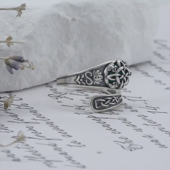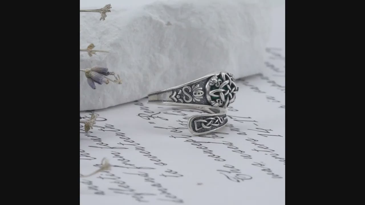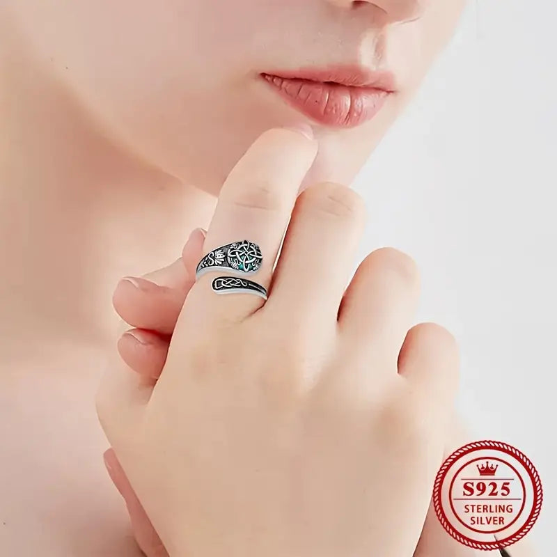 Sterling Silver Witches Knot Turquoise Patterned Spoon Ring Adjustable size P-T